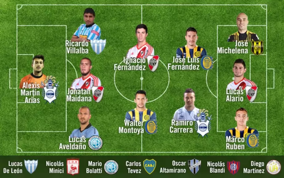 Asimismo, aparecen algunas sorpresas de clubes del ascenso que supieron realizar una dignísima campaña, y el emblema de Boca, Carlos Tévez.