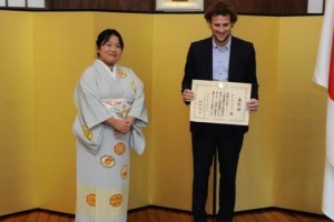 La Embajada de Japón en Uruguay decidió distinguir al futbolista Diego Forlán, teniendo en cuenta el paso por el jugador por el Gamba Osaka, donde disputó una temporada.