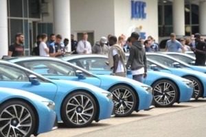 19 BMW i8 estuvieron estacionados en la puerta del King Power Stadium del Leicester City, como premio de Vichai Srivaddhanaprabha, dueño del club, a los campeones de la pasada Premier League.