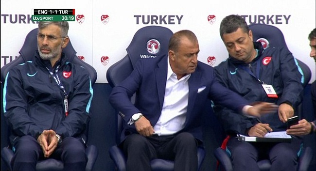 La tecnología, se sabe, ayuda si se usa bien. Sin embargo, por el momento en el fútbol no está del todo permitida. Poco le importó a Fatih Terim, seleccionador de Turquía, quien en el amistoso ante Inglaterra, no dudó en mostrarle al árbitro del partido un error desde su teléfono inteligente.