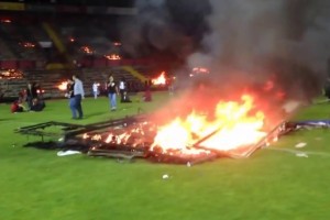 Lejos de reconocer la caída y sobrellevar su tristeza en las tribunas, los hinchas del equipo turco, reconocido por ser muy pasionales, bajaron al campo de juego e incendiaron su estadio.
