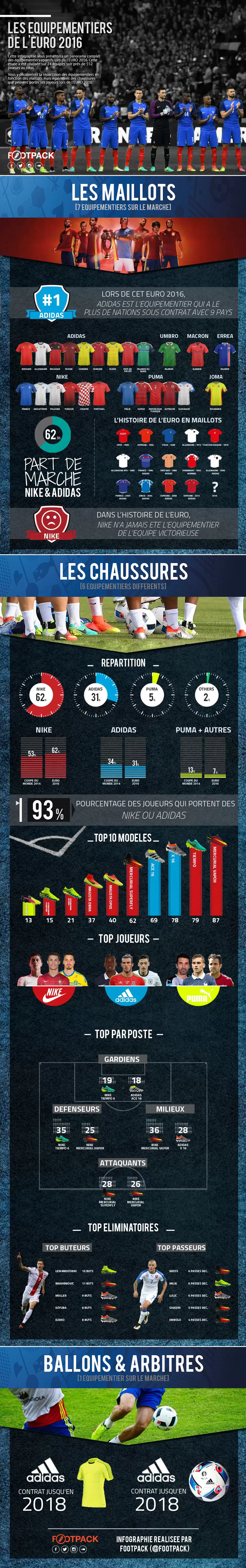 Entre otros, se destaca el relevamiento de todas las marcas que vestirán a los 24 países, con adidas como claro dominador, vistiendo a 9 seleccionados.