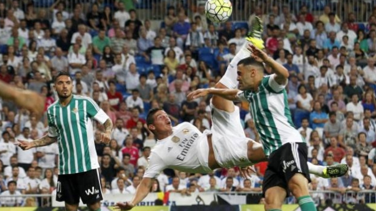 James Rodríguez, colombiano del Real Madrid, aparece entre los nominados al mejor gol, con el tanto que anotó de chilena ante Betis por la segunda jornada de La Liga.
