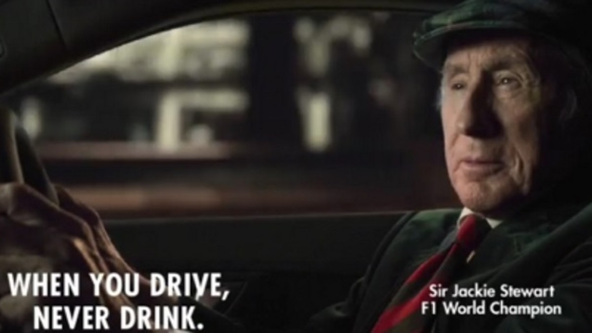 En la publicidad, se ve resaltada la figura e historia de Stewart como referente al volante, para cerrar con el escocés disfrutando de una cerveza en una reunión amistosa antes de que alguien más lo lleve en su coche, destacando así el mensaje de no manejar en el caso de estar alcoholizado.