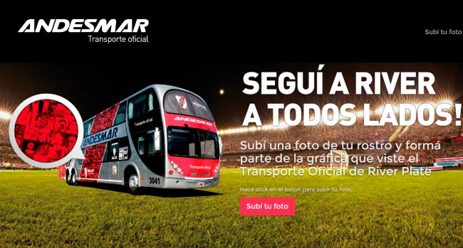 Bajo el lema, Seguí a River en todos loados, los hinchas podrán subir una foto de su cara en la web oficial de la empresa, y participar así para quedar entre las ganadoras que finalmente serán estampadas en el micro del plantel.