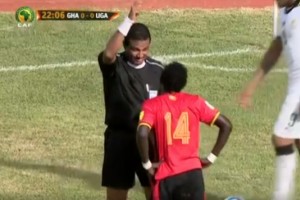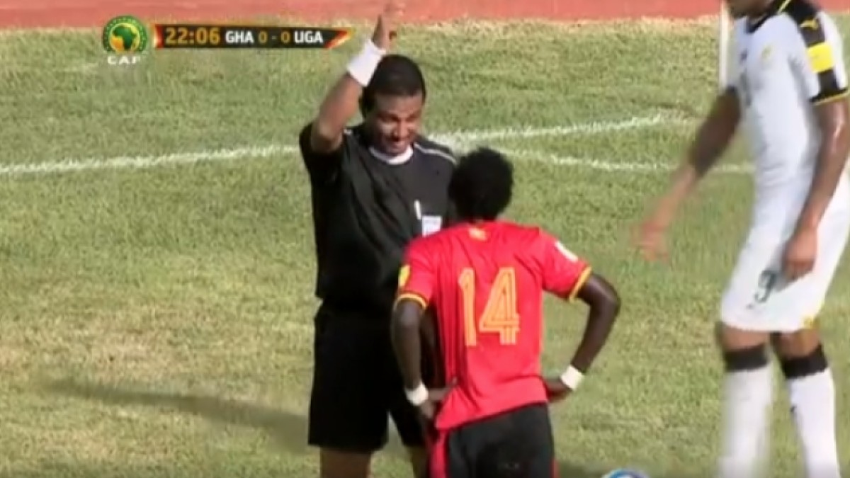 Nicholas Wadada, jugador de Uganda, había cometido una infracción, pero El Fadil sorprendió al levantar su brazo para amonestarlo pero sin mostrarle ninguna tarjeta.