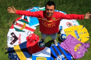 Insólito. El futbolista chileno Leo Monje se grabó en la piel los escudos de los 16 clubes en donde jugó durante su carrera profesional.