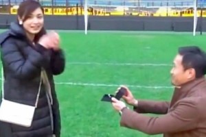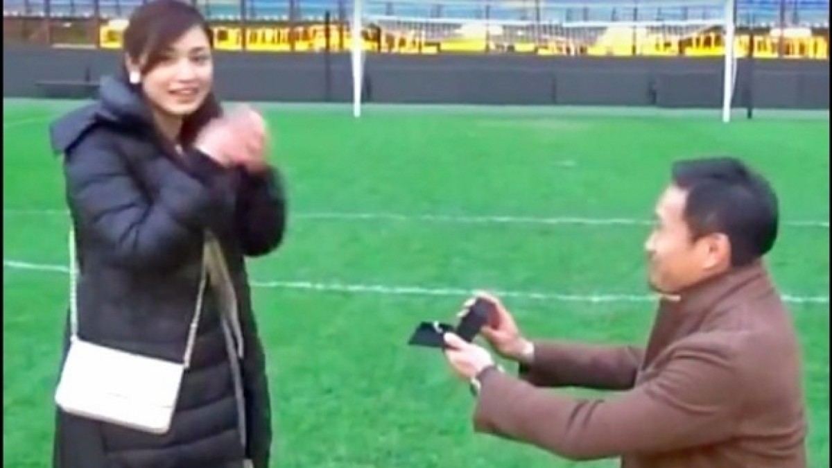 El japonés Yuto Nagatomo, defensor del conjunto italiano, se animó a pedirle matrimonio a su pareja, la actriz Taira Airi, en la mitad de la cancha del estadio Giusseppe Meazza.