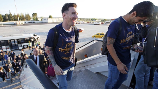 En el regreso a Cataluña, los jugadores posaron con una remera alusiva que mostraba la frase, en catalán, S’ha demonstrat, dentro de la silueta del escudo del club, y debajo la leyenda Campions La Liga 15-16.
