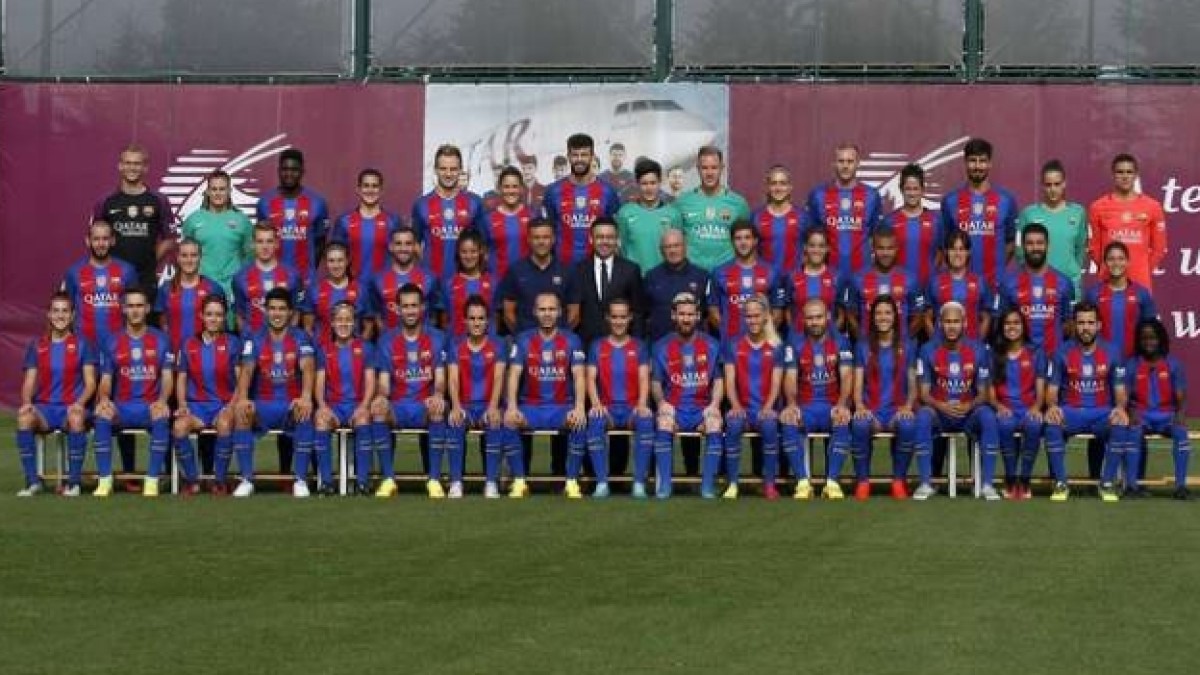 Jugadores y jugadoras del Barcelona posaron juntos para la foto oficial