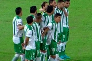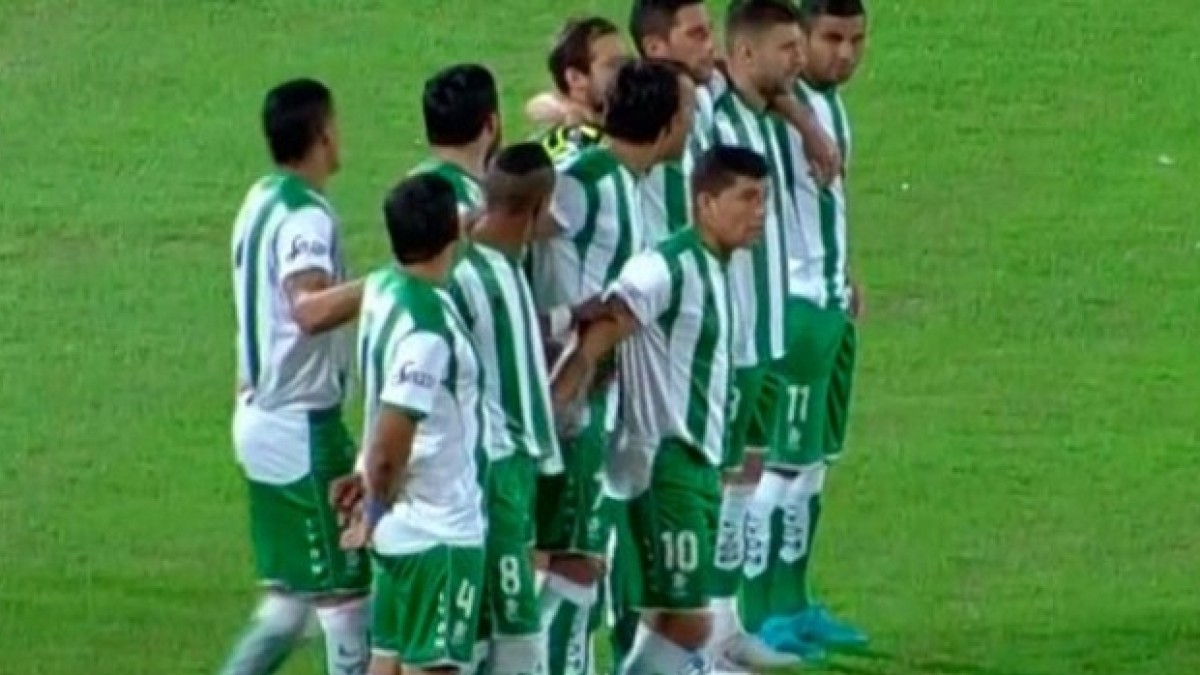 Tras el pitazo inicial, tiraron la pelota afuera y se abrazaron todos en señal de protesta a la deuda de más de cinco meses sin cobrar sus sueldos.