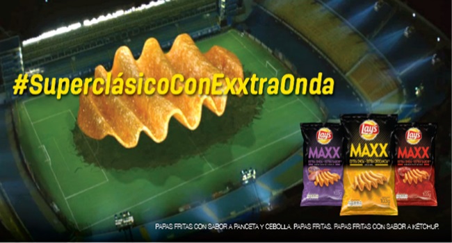 Promocionando la nueva línea de papas fritas, Lay`s montó un partido de PlayStation dentro de la Bombonera, emulando un clásico frente a River.