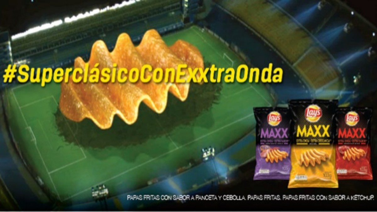 Promocionando la nueva línea de papas fritas, Lay`s montó un partido de PlayStation dentro de la Bombonera, emulando un clásico frente a River.