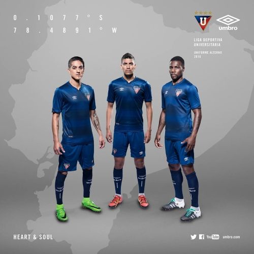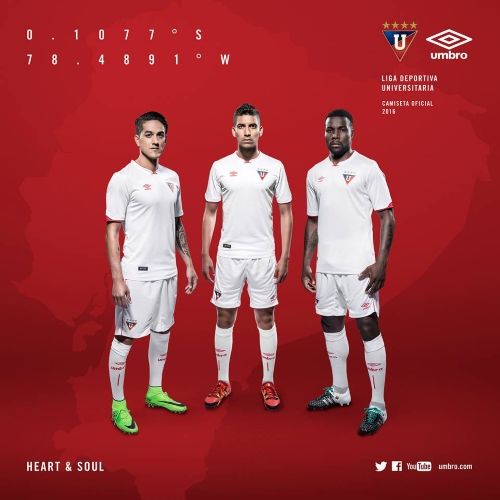 De cara a la actividad oficial del 2016, Umbro continúa presentando los uniformes de sus clubes sudamericanos. Ahora fue el turno de la Liga Deportiva Universitaria de Quito, con una serie de detalles alusivos a los 85 años del club que supo ser Campeón de América en 2008.