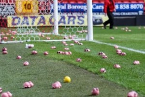 Una lluvia de cerdos de plástico suspendió un partido en Inglaterra