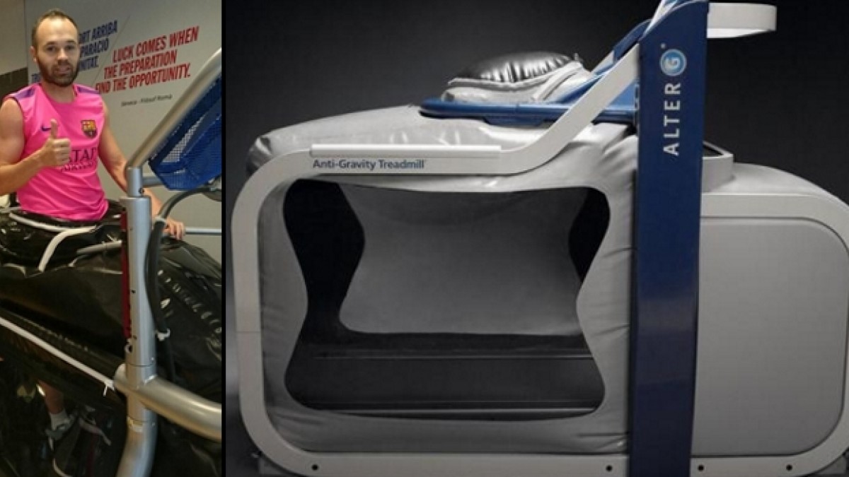 El volante español Andrés Iniesta sufrió una lesión en su rodilla que lo alejó de las canchas por algunas semanas. Sin embargo, el crack del Barcelona se recupera de una manera muy particular, con la mejor tecnología del mundo. Se trata de una máquina conocida como Alter-G, utilizada por la NASA, que no hace más que reducir los efectos de la gravedad amortiguando los impactos del deportista a la hora de correr.