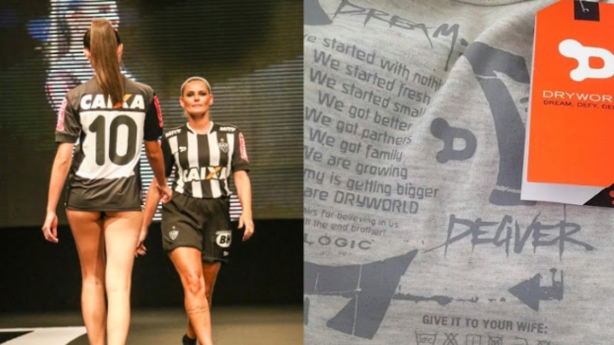 Se trata de Dryworld, la marca canadiense que pisará fuerte en el fútbol de Brasil, vistiendo entre otros al Atlético Mineiro. En el evento presentación de la nueva indumentaria del Galo, todas las críticas apuntaron a la decisión de Dryworld de que las encargadas de presentar la camiseta fueran modelos con poca ropa.