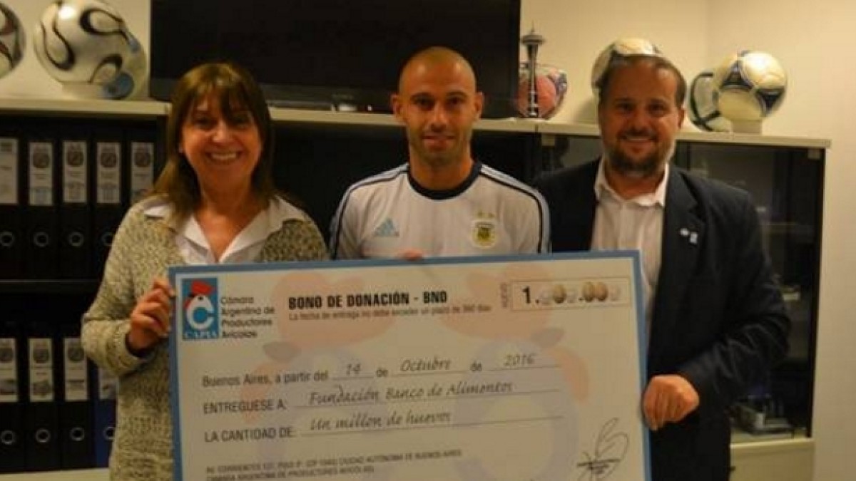 Junto a la Cámara Argentina de Productores Avícolas, Javier Mascherano realizó una donación tan simbólica como valiosa. El aguerrido futbolista argentino, que en la Copa del Mundo de 2014 se vistió de héroe en distintas ocasiones, donará un millón de huevos para comedores infantiles de todo el país.