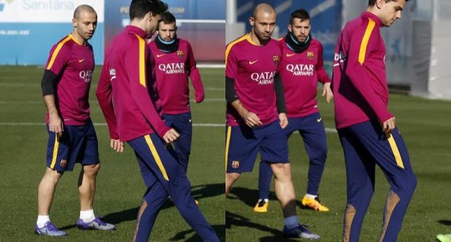 Javier Mascherano utilizó los botines cromados, con detalles violáceos, mientras que Gerard Piqué se quedó con las botas de los tonos rojos.