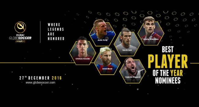 Se viene la temporada de premios y los futbolistas argentinos siguen copando las nóminas de candidatos a los diferentes reconocimientos. El 27 de diciembre se entregarán en Dubai los Globe Soccer Awards. Y Lionel Messi y Gonzalo Higuaín integran el listado de seis candidatos a la estatuilla al mejor jugador 2016. Cristiano Ronaldo, Jamie Vardy, Gareth Bale y Antoine Griezmann son los otros aspirantes al cetro.