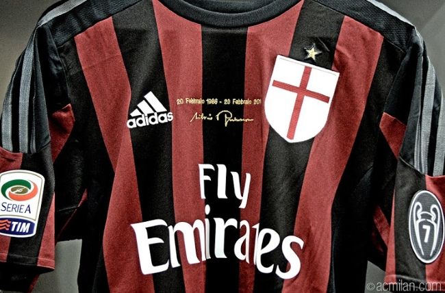 Silvio Berlusconi cumplió 30 años como dueño del AC Milan, y el club italiano decidió celebrarlo con una camiseta especial. La prenda adidas del Rossonero sumó así una inscripción alusiva, con las fechas 20 de febrero de 1986 – 20 de febrero de 2016, más la firma de Berlusconi.