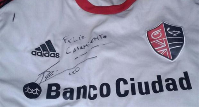 Tras muchas horas de espera, una vez finalizado el partido, fue Armando Pérez, el presidente de la Comisión Normalizadora, el que ingresó al hotel de la Selección y le entregó la camiseta a Messi, quien al tanto de la noticia, les deseó un “Feliz casamiento”, además de estampar su autógrafo.