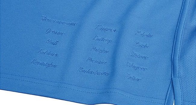 La nueva equipación presenta un estilo sencillo, con un celeste claro de base, cuello en forma de V, y algunos ornamentos blancos. En la parte inferior de la prenda se bordaron los 15 nombres de los jugadores campeones de 1966 y, en el interior del cuello, la foto de los protagonistas.