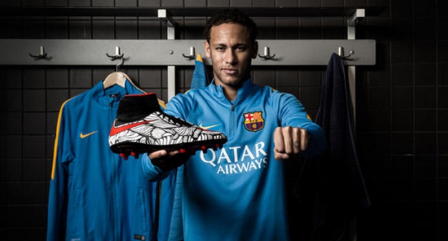 Nike le confeccionó unos nuevos botines a Neymar Jr para el 2016. Se trata de un modelo especial para el brasilero, quien gana posiciones en la consideración de la marca estadounidense. Los Nike Ousadia Alegria, representan la esencia del crack brasilero quien incluso tiene ambas palabras tatuadas en su cuerpo.