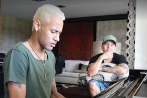 “Yo necesito” se llama la canción interpretada por el crack brasilero, que además toca el piano, ante la atenta mirada de un amigo.