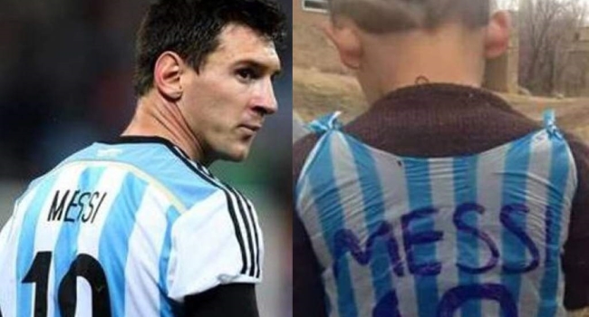 Murtaza Ahmadi, es un niño afgano que se hizo viralmente conocido meses atrás, luego de que se difundiera una foto en la cual se lo aprecia de espaldas, utilizando una bolsa plástica de tonalidades celeste y blanca con el nombre y número de Messi precariamente impregnados en su diseño.