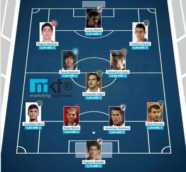 Cuatro jugadores de Boca, tres de River y uno de Racing, Rosario Central, Huracán y Lanús componen el once más valioso del fútbol argentino 2016/17, de acuerdo con las estadísticas del sitio especializado Transfermarkt, con un promedio de edad de 23.7 años.