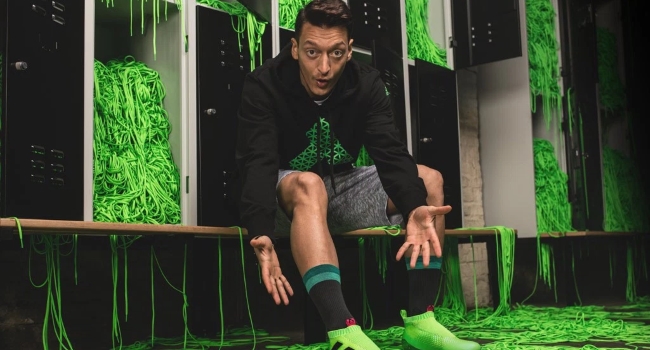 Los botines permiten una superficie limpia y un mejor tacto. La construcción innovadora se hace eco de un diseño completamente audaz en Green Solar y de choque rosado, listo para ser estrenado por Dele Alli y Mesut Özil.