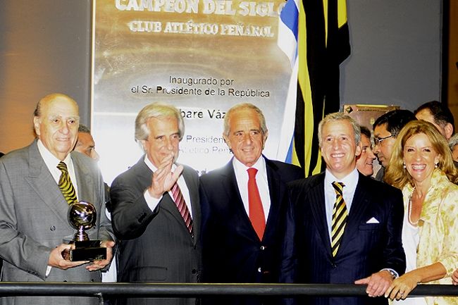 Primero, Juan Pedro Damiani (Presidente del Club Atlético Peñarol), el Dr. Tabaré Vázquez (Presidente de la República Oriental del Uruguay), Julio María Sanguinetti (Presidente Honorario del Club), Rodolfo D'Onofrio (Presidente de River) y Daniel Martínez (Intendente de Montevideo) descubrieron una placa en el interior del Hall de entrada del Estadio, conmemorando la inauguración.