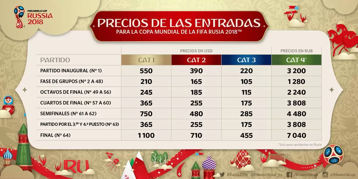 Además, se habilitará una categoría 4, con boletos únicamente para los residentes rusos.