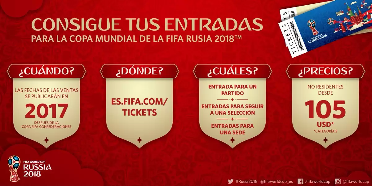 Después de la Copa Confederaciones 2017 se publicará la fecha inicial de ventas, y podrán comprarse desde la web oficial de la FIFA.