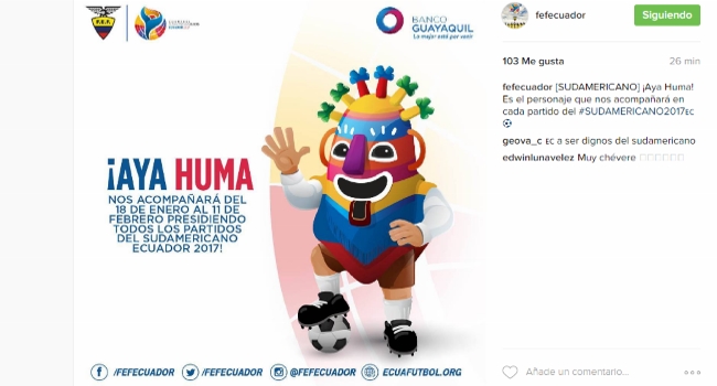 La Federación Ecuatoriana de Fútbol publicó esta mañana mediante su cuenta oficial de Instagram, la imagen de la nueva mascota oficial para el torneo, que albergará a las diez selecciones juveniles CONMEBOL y dará cuatro cupos para el Mundial de Corea en mayo.