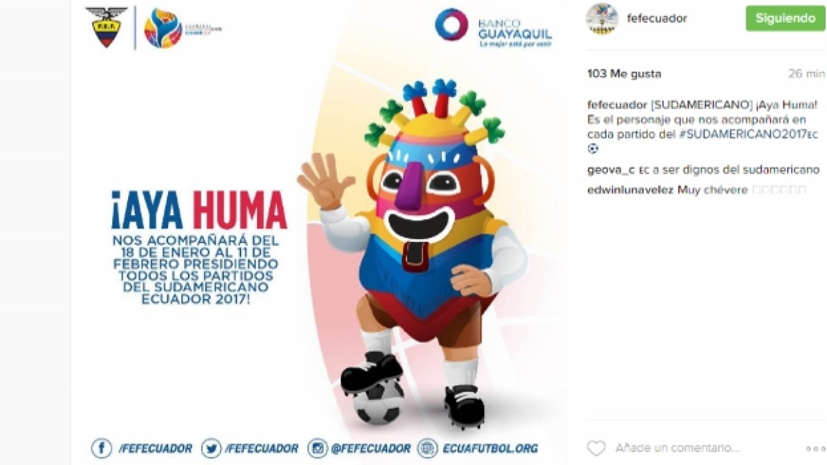 La Federación Ecuatoriana de Fútbol publicó esta mañana mediante su cuenta oficial de Instagram, la imagen de la nueva mascota oficial para el torneo, que albergará a las diez selecciones juveniles CONMEBOL y dará cuatro cupos para el Mundial de Corea en mayo.