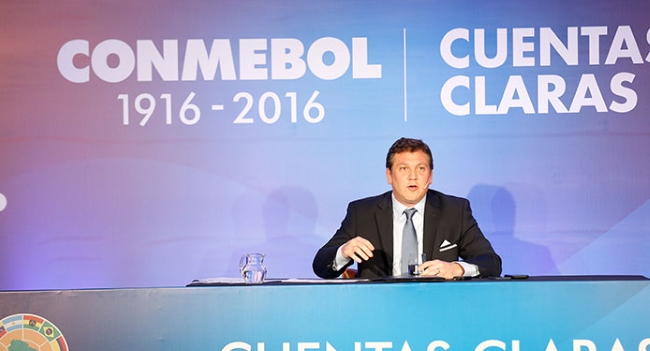 Alejandro Domínguez, quien lidera la centenaria institución rectora del fútbol sudamericano desde enero de 2016, presentó ante la prensa un informe de sus primeros seis meses de gestión, un hecho inédito de rendición de cuentas para la centenaria institución.