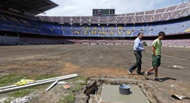 Aprovechando el receso en Europa por la EURO2016, el Barcelona decidió llevar adelante el proceso de resiembra del Camp Nou. La casa Culé tendrá, una vez finalizado el trabajo, un césped híbrido que combinará césped natural con fibras plásticas.