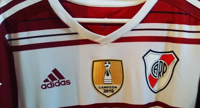 En el choque ante Olimpo por el torneo de Primera División, River estrenó en su camiseta un parche dorado con la leyenda Campeón 2016, y la silueta del ansiado trofeo.