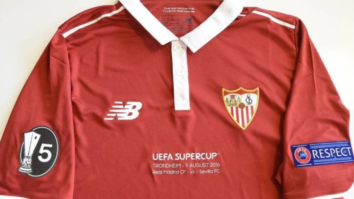 Sevilla reveló su camiseta para la Supercopa de Europa, con el logo de pentacampeón