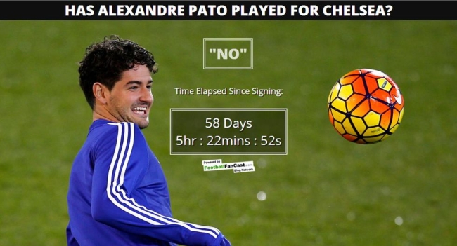 Alexandre Pato fichó por el Chelsea a fines de enero y, hasta el momento, no disputó ni un solo minuto con la camiseta Blue. Para burlarse del brasileño, el sitio web hasalexandrepatoplayedforchelsea.com repasa la cantidad de minutos en los que aun no ha jugado profesionalmente.