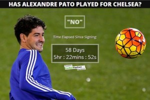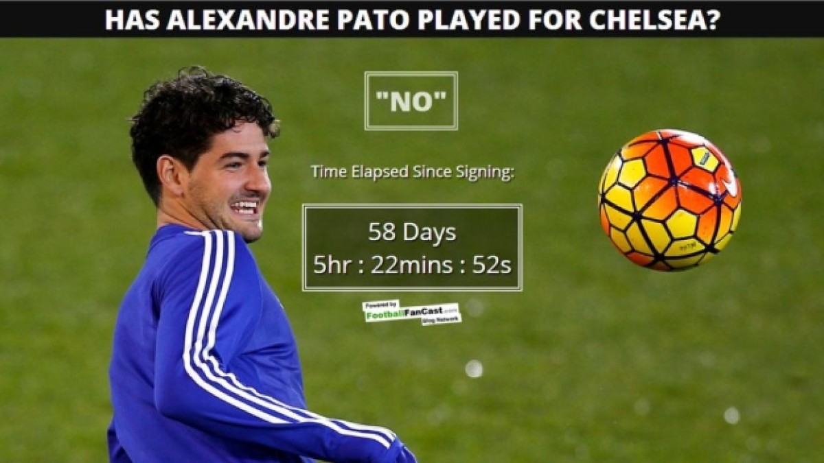 Alexandre Pato fichó por el Chelsea a fines de enero y, hasta el momento, no disputó ni un solo minuto con la camiseta Blue. Para burlarse del brasileño, el sitio web hasalexandrepatoplayedforchelsea.com repasa la cantidad de minutos en los que aun no ha jugado profesionalmente.