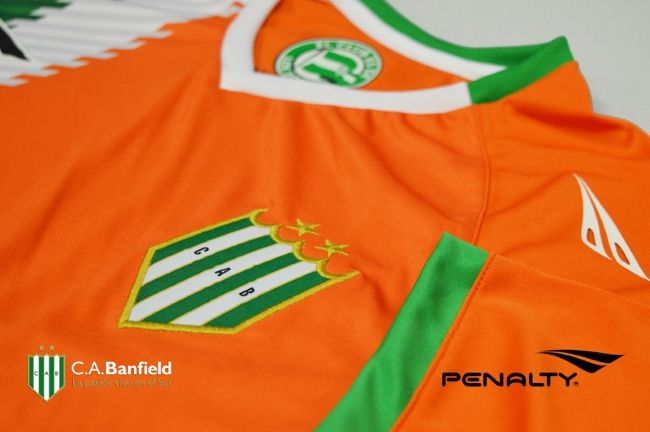 En ocasión de esta temporada 2016/17, en la que el equipo vuelve a estar dirigido por el Emperador, regresa también #LaNaranja, que será estrenada en el partido de este domingo a las 16 ante Vélez a disputarse en el Estadio Florencio Sola. Es la nueva camiseta alternativa Penalty de Banfield. Íntegramente confeccionada en microfibra de poliéster con tecnología COOLFIT en un tono naranja vibrante. Recordando la mencionada primera camiseta de este color utilizada por el club, posee una bandera albiverde que cae desde el hombro con un particular diseño que evoca a la figura del taladro. Tiene perforaciones láser en hombros para mejorar la respiración de la prenda, estampa personalizada “El Club es de los Socios” en el cuello interno, holograma de autenticidad y etiqueta CAB original. El conjunto alternativo se completa con short blanco y medias verdes.