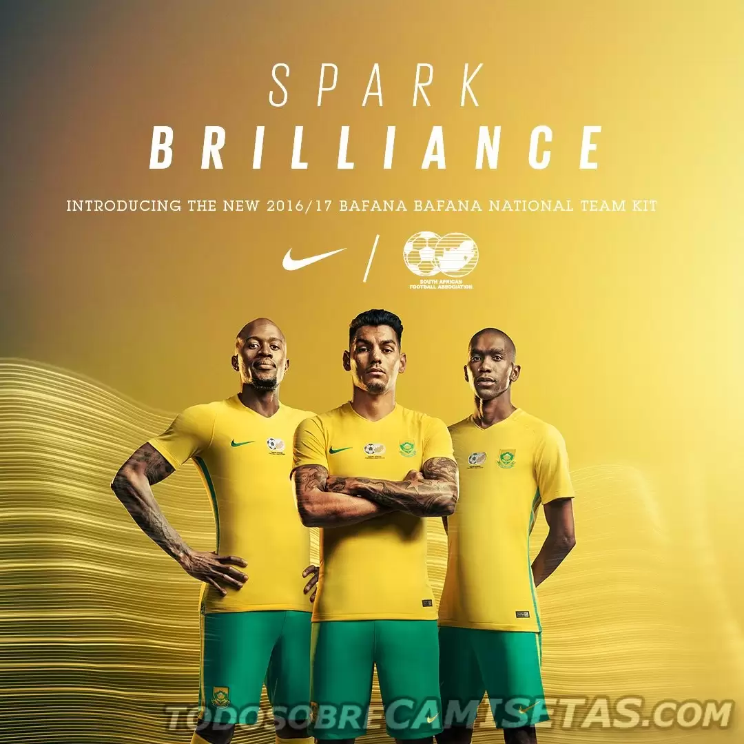 El seleccionado sudafricano de fútbol vía su marca oficial presentó los diseños de sus nuevos uniformes, en medio de su participación en Eliminatorias rumbo al mundial de Rusia 2018.