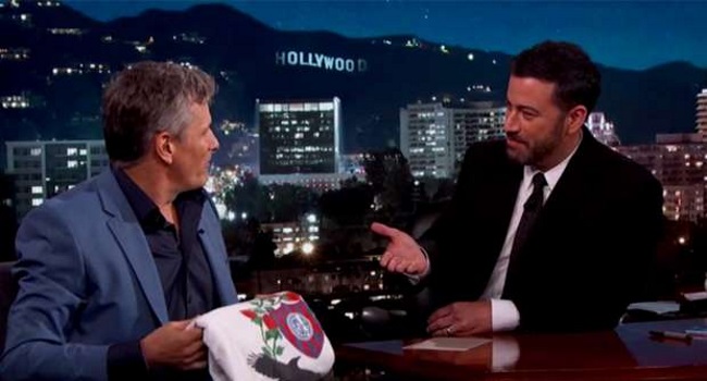 Viggo fue por su rol en Captain Fantastic pero aprovechó la ocasión para obsequiarle a Kimmel algunos objetos alusivos al Ciclón.