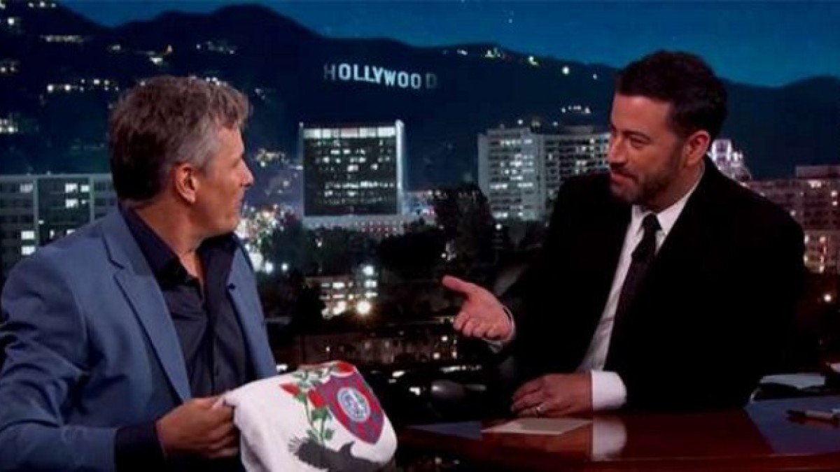 Viggo fue por su rol en Captain Fantastic pero aprovechó la ocasión para obsequiarle a Kimmel algunos objetos alusivos al Ciclón.