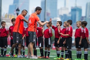 Los jugadores del Bayern Munich, el español Xabi Alonso y el chileno Arturo Vidal, realizaron un divertido desafío contra 40 niños que asistieron a su entrenamiento.