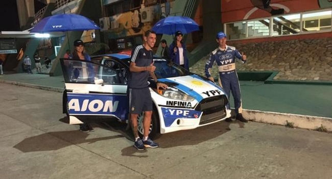 El Ford Fiesta MR del YPF Elaion Rally juntó así a ambos deportistas, en un roadshow que también tuvo fines solidarios, ya que además se subastará una camiseta de Di María a beneficio de la Fundación Baccigalupo.