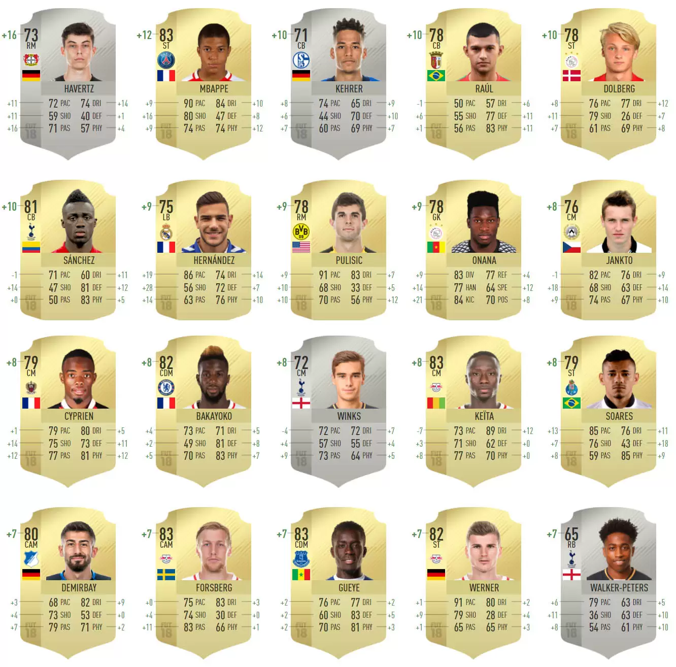 Con figuras como el último refuerzo del PSG, Kylian Mbappé, el goleador de la Copa Confederaciones con Alemania, Timo Werner y la joya estadounidense del Borussia Dortmund, Christian Pulisic entre los primeros perfiles, se destaca un considerable aumento en el puntaje de los más jóvenes del juego.